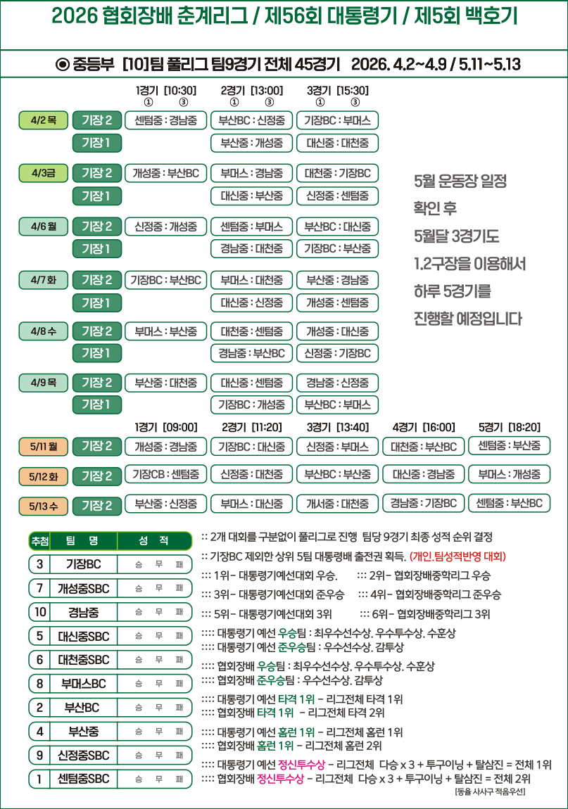 | ±âÀå º¸Á¶2±¸Àå | 10:30 | °³¼ºÁßSBC : ºÎ»êBC |